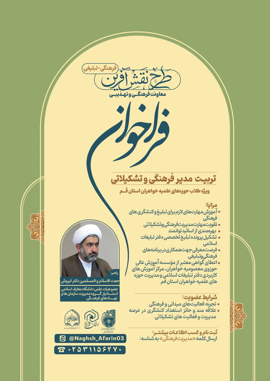 - فرصت معرفی جهت همکاری در برنامههای فرهنگی و تبلیغی