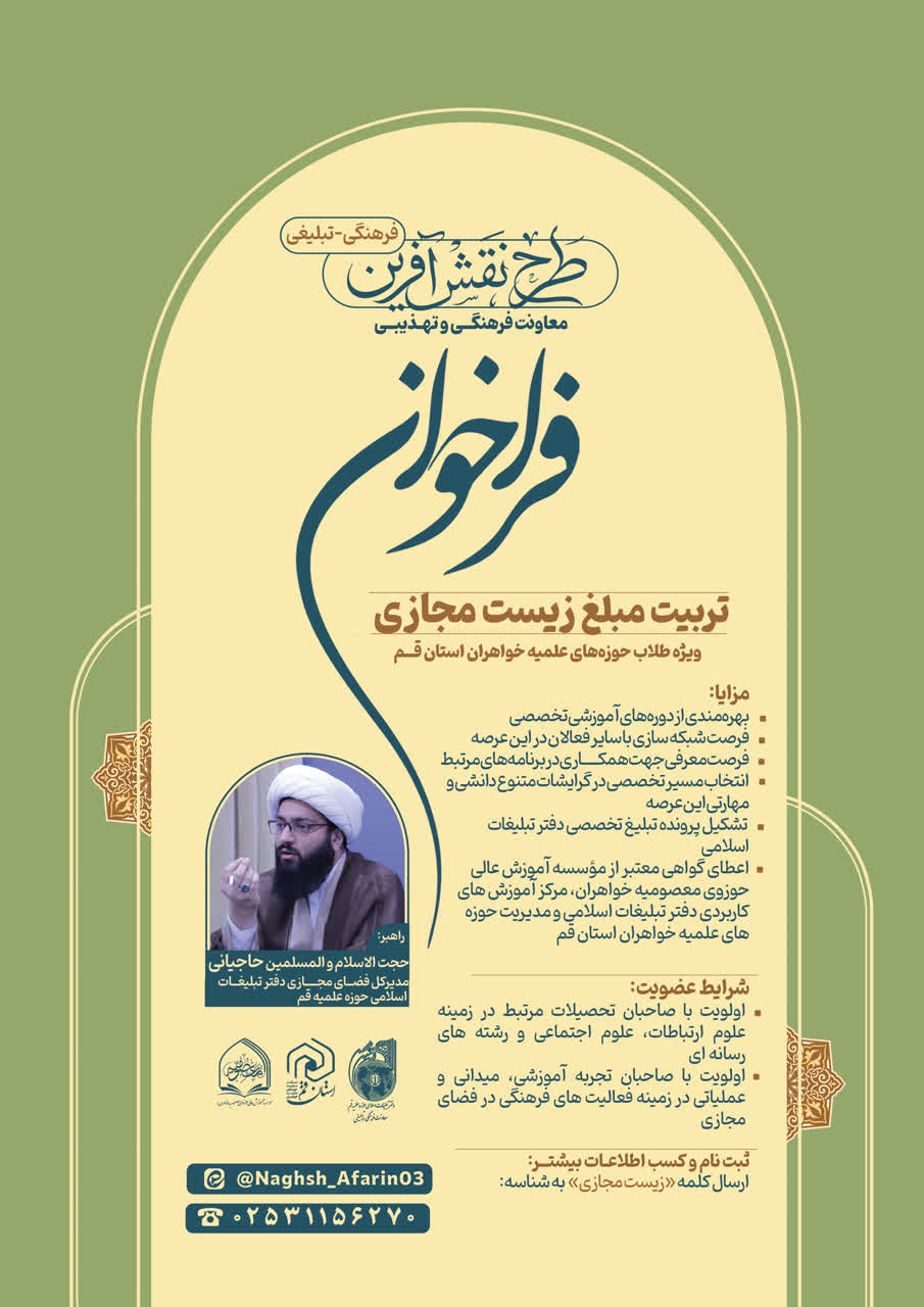 راهبر:حجت الاسلام و المسلمین حاجیانی(مدیرکل فضای مجازی دفتر تبلیغات اسلامی حوزه علمیه قم)