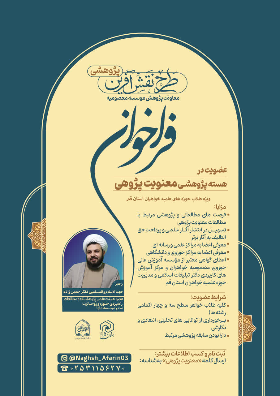 راهبر: حجت الاسلام والمسلمین دکتر حسنزاده(عضو هیئت علمی پژوهشکده مطالعات راهبردی حوزه و روحانیت،مدیر موسسه مأوا)