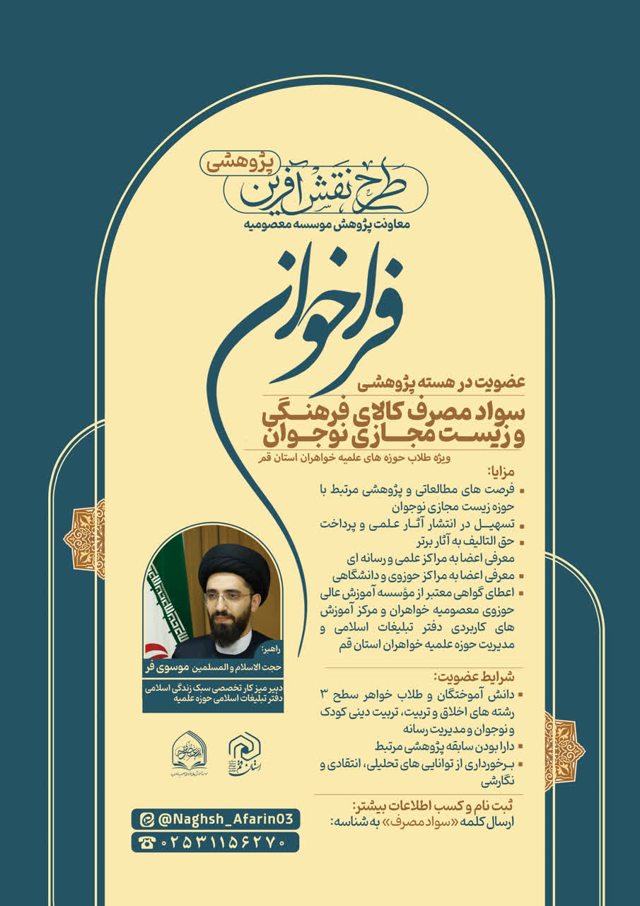 - دانش آموختگان و طلاب خواهر سطح ۳ و ۴ رشتههای اخلاق و تربیت تربیت دینی کودک و نوجوان و مدیریت رسانه