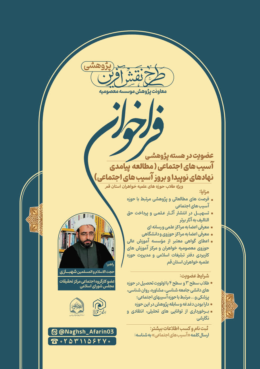 - فرصت های مطالعاتی و پژوهشی مرتبط با حوزه آسیبهای اجتماعی